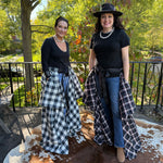 FUN and FLIRTY western twist on a traditional Scottish staple. Ties in the front with a quality grosgrain matte finish ribbon. Hostess skirt also features pockets in the top layer of skirt.
